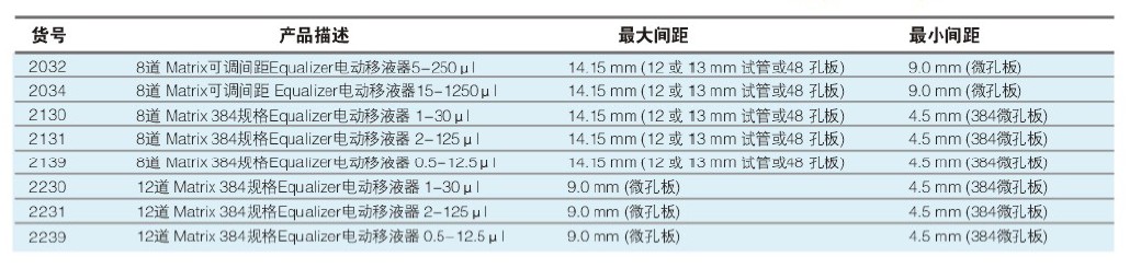 商品名稱:Matrix Equailizer電動多道可調間距移液器